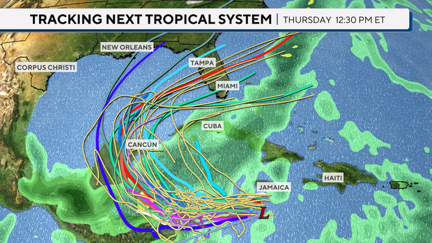 Due to a low pressure system in the western Caribbean, conditions are favorable for the formation of a tropical system. Forecasting models take current environmental factors with historical data to calculate “spaghetti plots” where systems can track. Each model uses different calculations to determine how the forecast tracks and the consensus output from those models.
